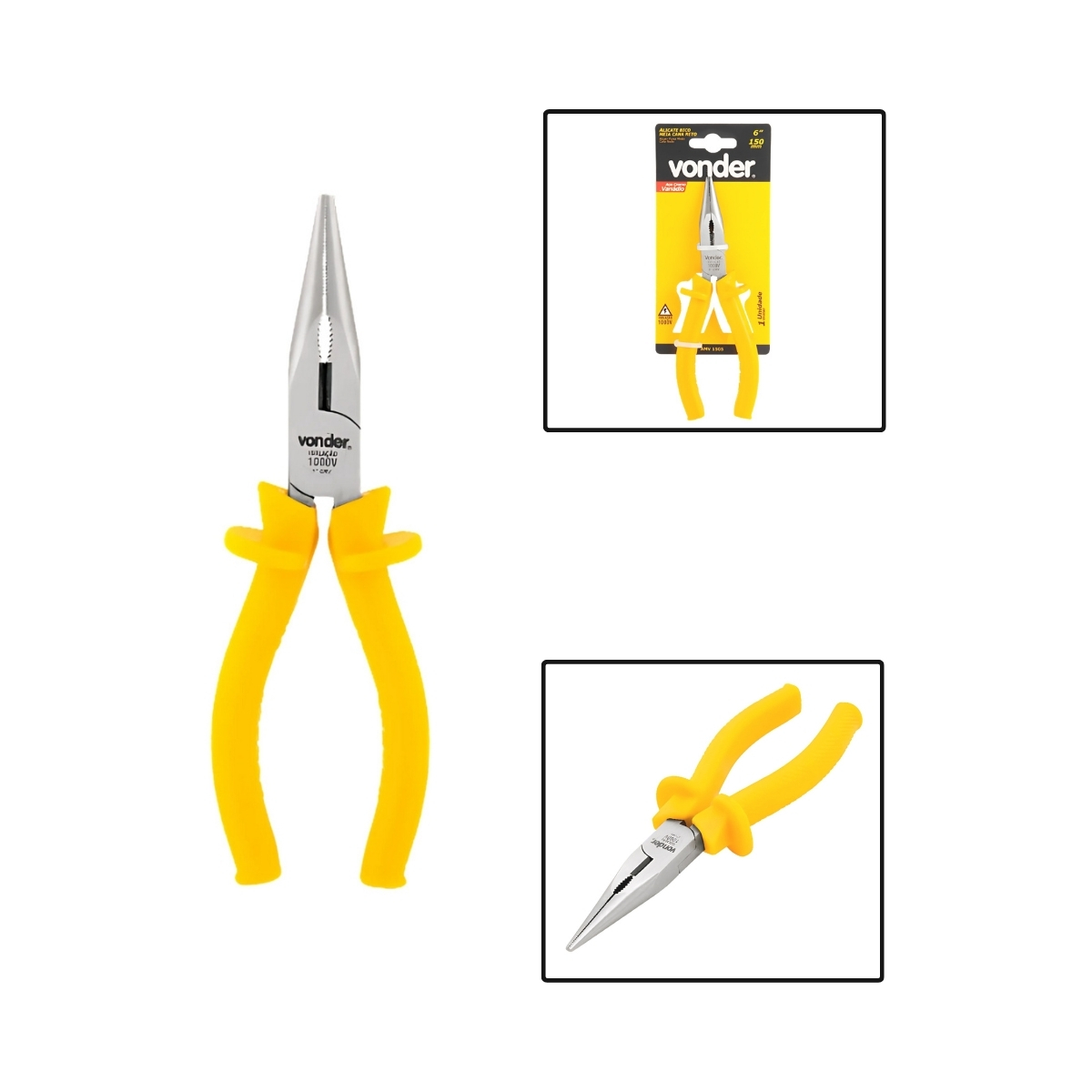 O alicate bico meia cana reto de 6 polegadas isolado até 1.000V é ideal para serviços elétricos que exigem precisão, alcance e segurança. Desenvolvido para manusear fios, dobrar, segurar componentes pequenos e acessar áreas estreitas, oferece excelente controle em instalações e reparos residenciais, automotivos e industriais. Possui cabo isolado que suporta até 1.000 volts para proteção contra choques elétricos, corpo em aço de alta resistência e ponta longa e fina que facilita o trabalho detalhado em locais de difícil acesso. Conta ainda com mordentes bem definidos para melhor firmeza, corte eficiente para fios e acabamento resistente ao desgaste. Ferramenta essencial para eletricistas, instaladores e técnicos que procuram desempenho profissional aliado à segurança.