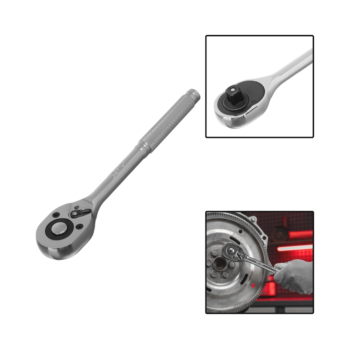 A Chave Catraca Reversível para Soquete com encaixe de 1/2”, fabricada em cromo vanádio e com acabamento cromado, é indicada para apertar e soltar parafusos com rapidez, precisão e segurança.