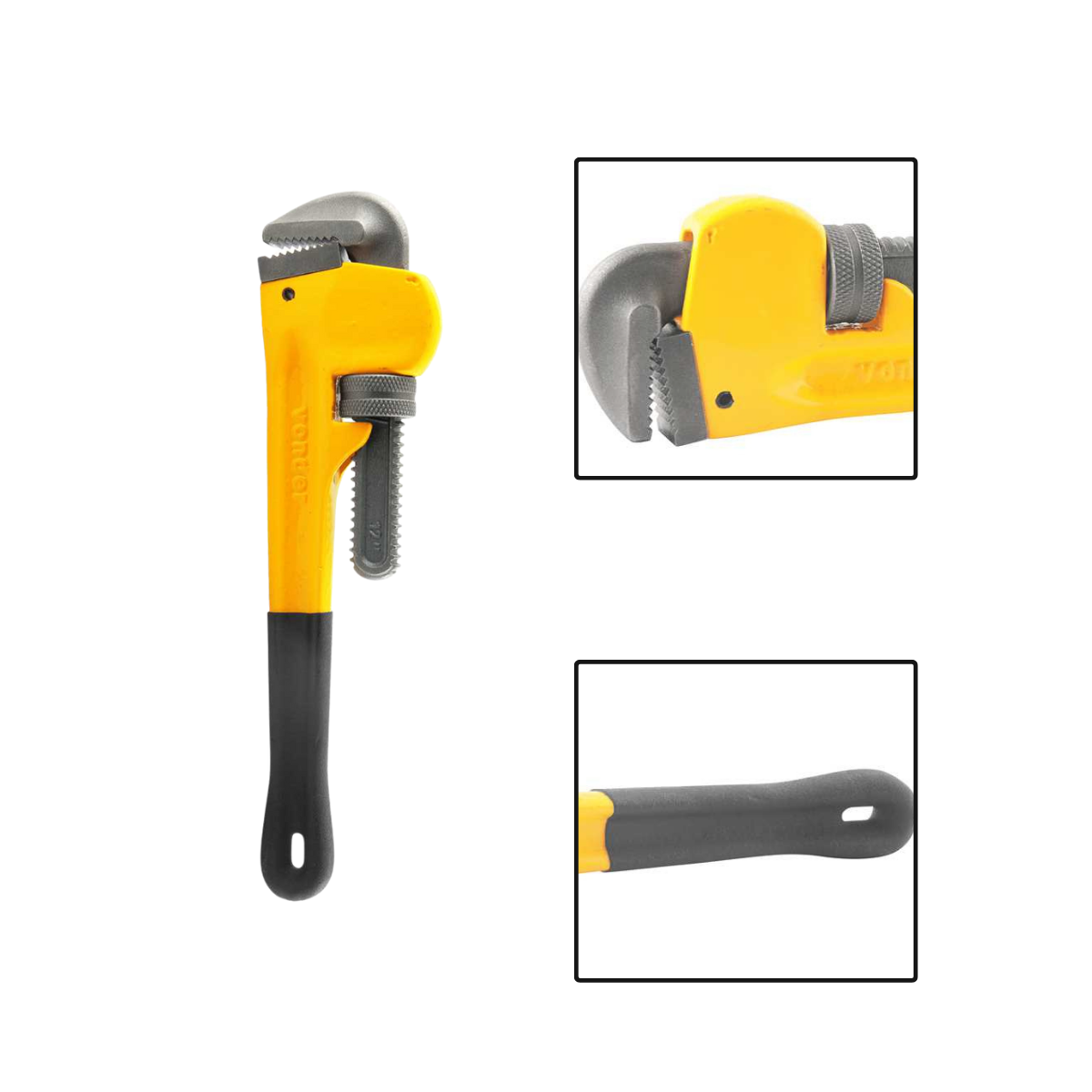 A chave grifo 12" tipo americana é indicada para apertar e soltar tubos, conexões e peças cilíndricas com firmeza e segurança. Fabricada em aço resistente, oferece alta durabilidade, ideal para uso profissional em hidráulica, reparos industriais, serralheria e manutenção geral. Possui mordentes ajustáveis com dentes reforçados que proporcionam excelente agarre mesmo em superfícies lisas ou desgastadas, além de permitir regulagem rápida para diferentes diâmetros. Seu cabo anatômico garante maior conforto e controle durante o uso, reduzindo o esforço e aumentando a eficiência no trabalho. Essencial para instaladores, encanadores e profissionais de manutenção.