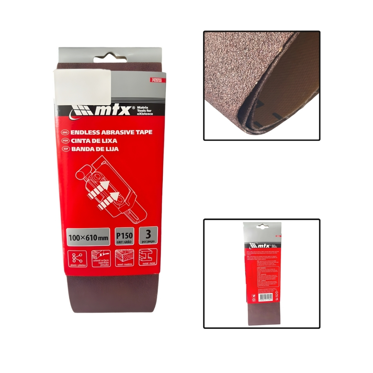 - 03 Cinta De Lixa 100 X 610mm 150 Grãos.