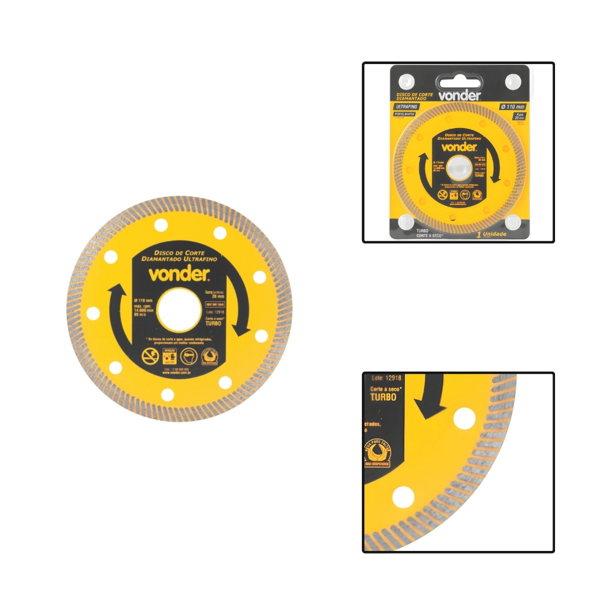 O disco de corte diamantado ultrafino 110 mm para porcelanato é projetado para proporcionar cortes extremamente precisos, limpos e com mínimo lascamento em materiais de alta dureza. Possui camada diamantada de alta qualidade e espessura ultrafina, garantindo maior suavidade no corte e reduzindo vibrações, o que resulta em acabamento profissional mesmo em peças delicadas. Compatível com serras mármore e esmerilhadeiras com adaptador adequado, é ideal para cortar porcelanato, cerâmicas, pisos frios, azulejos e revestimentos em geral. Sua construção robusta oferece excelente durabilidade e desempenho constante, sendo indispensável para profissionais de construção, instaladores, azulejistas e reformas que exigem precisão e eficiência.