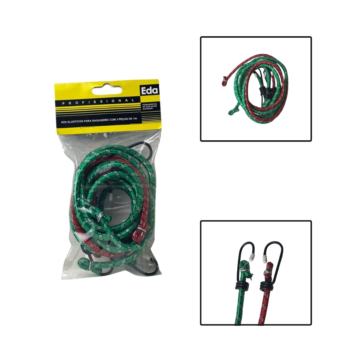 - 01 Jogo de Elásticos Para Bagageiro com 1 metro e 3 peças.