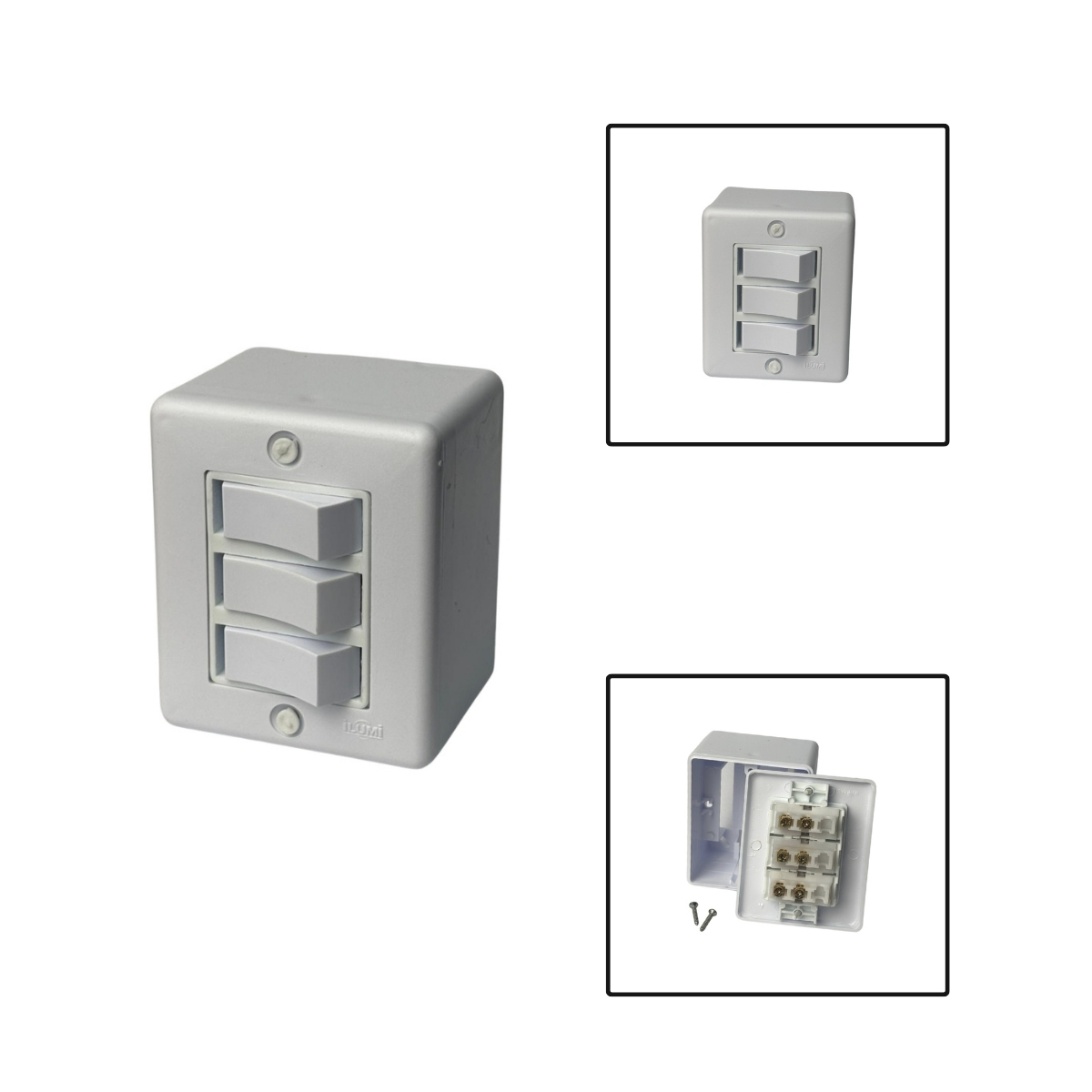 - 01 Interruptor Simples de 3 Teclas 6A 250V Branco.