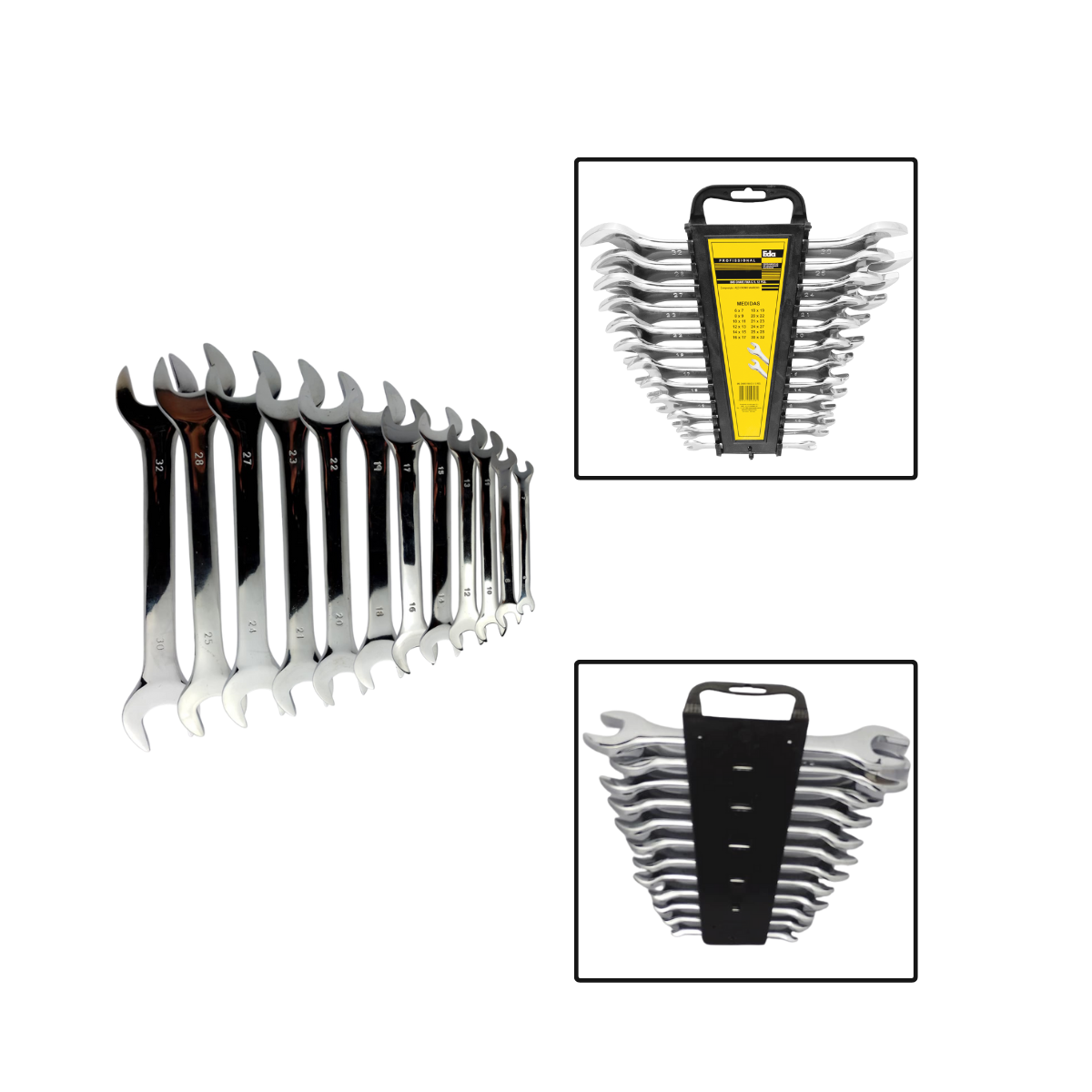 O jogo de chave fixa de aço com 12 peças de 6 a 32mm é indicado para aperto e desaperto de porcas e parafusos sextavados em trabalhos profissionais e domésticos. Cada chave possui duas bocas com medidas diferentes, possibilitando maior versatilidade e alcance em serviços mecânicos, automotivos, industriais, hidráulicos e de manutenção geral. Fabricadas em aço resistente, garantem alto torque, durabilidade e excelente precisão no encaixe, evitando desgaste prematuro das peças e proporcionando maior segurança e eficiência. O kit apresenta uma gama completa de tamanhos essenciais para o dia a dia de oficinas, marcenarias, indústrias, construção civil e uso em casa, tornando-se uma solução prática, durável e indispensável para quem necessita de ferramentas confiáveis.
