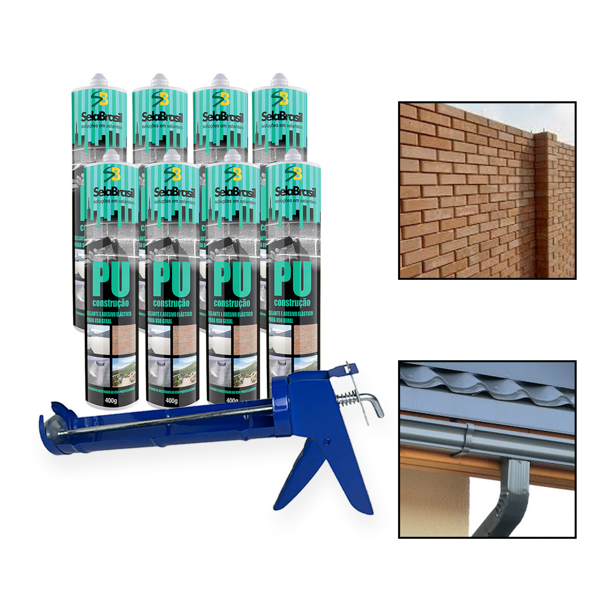 Kit 8 Cola Selante PU Construção 400g Branco c/ Aplicador