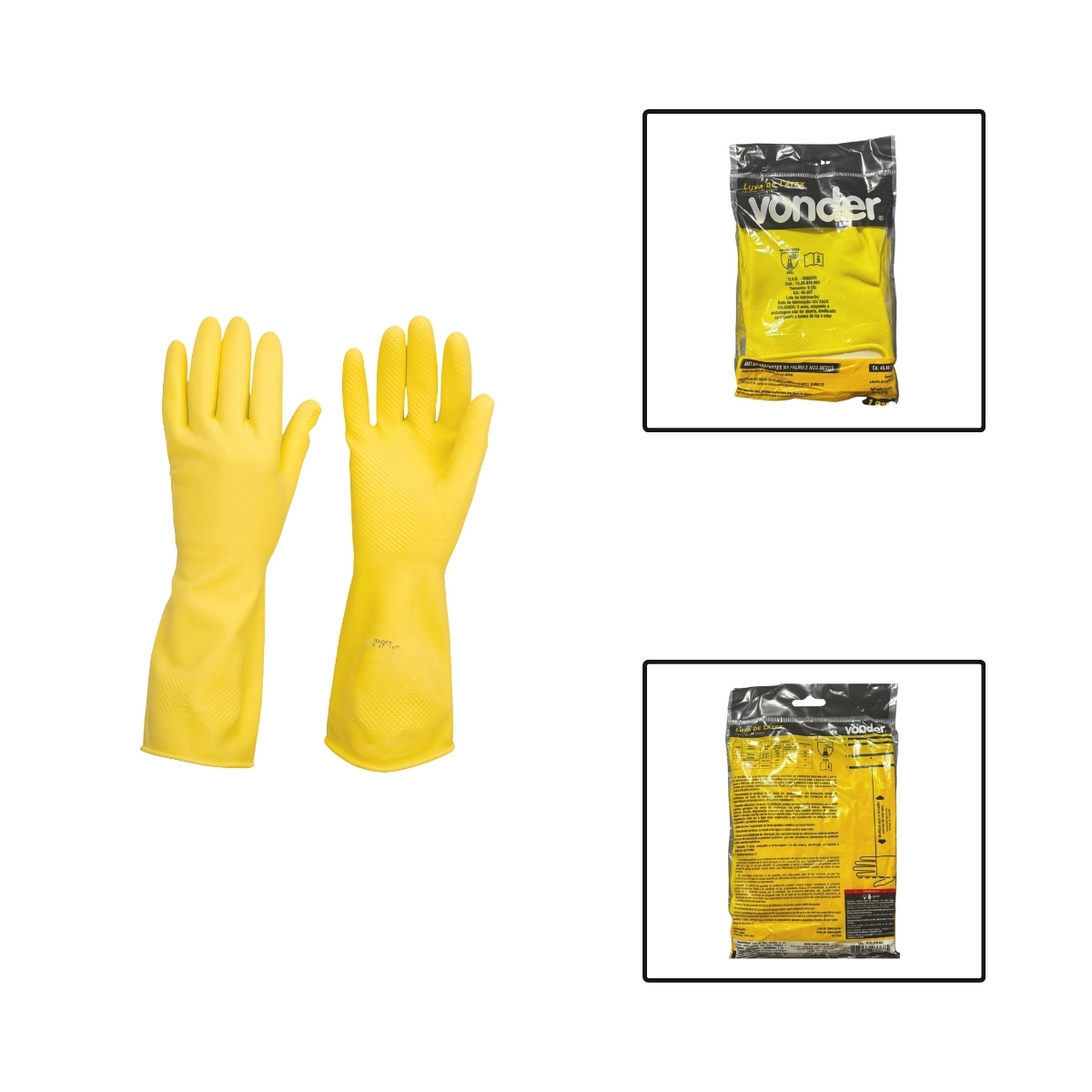 - 01 Par de Luvas De Látex Antiderrapante Tamanho G Amarelas.