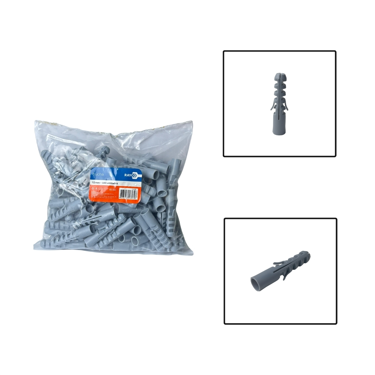 Ideal para fixações seguras e resistentes em alvenaria, o Pacote com 100 Buchas Fixas Sem Anel 12x60mm é a solução confiável para profissionais que não abrem mão de desempenho e durabilidade! Produzidas com material de alta qualidade, garantem encaixe firme e estabilidade mesmo sob cargas mais exigentes, sendo ideais para parafusos e suportes diversos. Com instalação prática e compatível com brocas de 12mm, agilizam o trabalho e aumentam a produtividade.