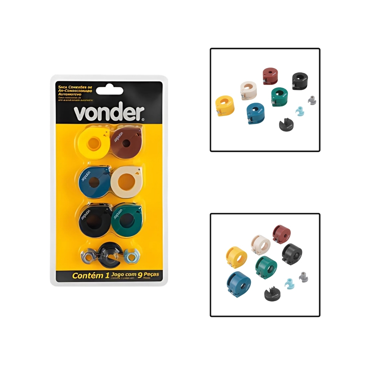O Jogo Saca Conexões de Ar-Condicionado Automotivo com 9 peças é essencial para profissionais que buscam agilidade e segurança na manutenção de sistemas de refrigeração veicular. Ele permite soltar conexões de engate rápido sem danificar tubulações, facilitando o trabalho mesmo em espaços apertados. Compatível com a maioria dos veículos nacionais e importados, o kit inclui: sacadores para engate rápido de 3/8" com tubo de 10 mm e 3/4"; 1/2" com tubo de 1/2" e 3/4"; 5/8" com tubo de 3/4"; 3/4" com tubo de 21 mm; além de sacadores de acoplamento de 3/8" e 5/16" e sacador de engate rápido de 5/16".