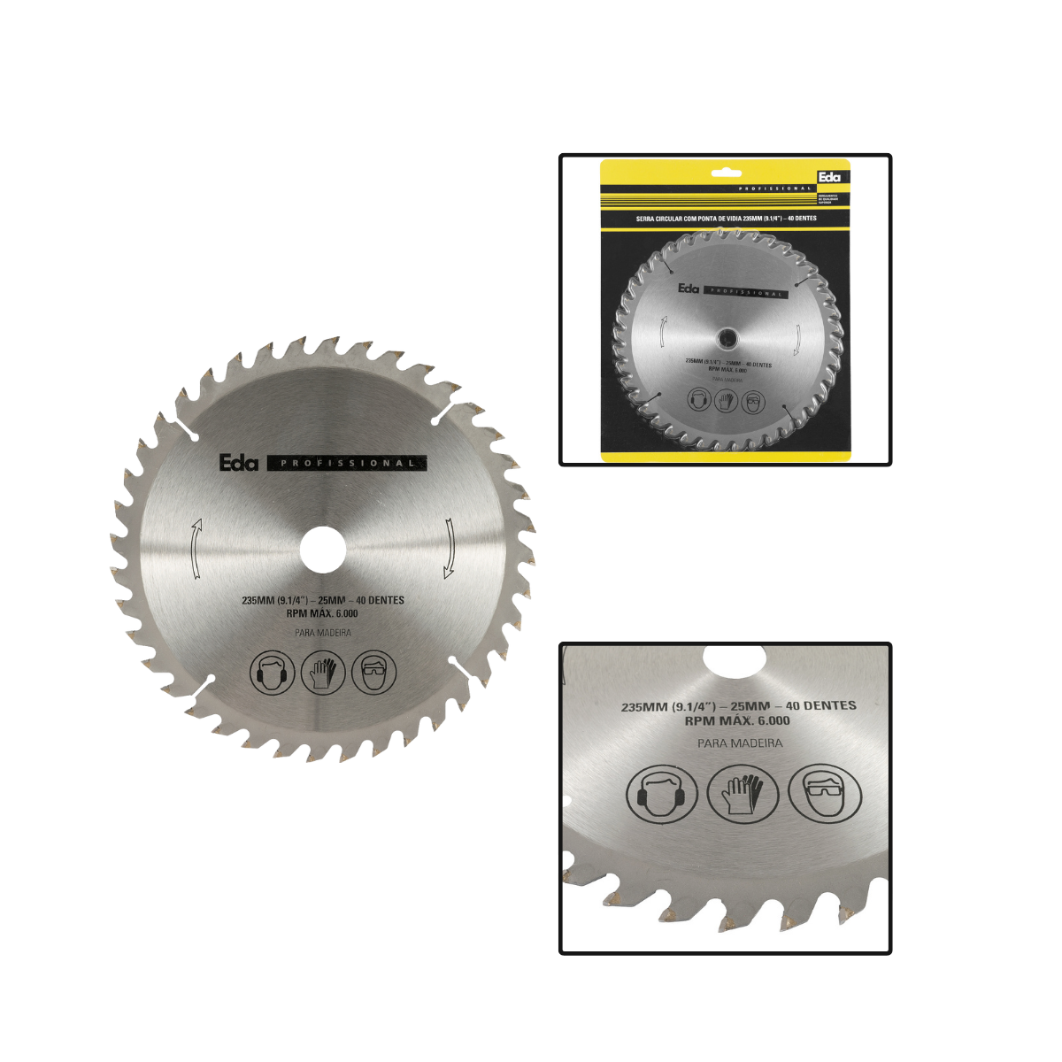 Com diâmetro de 235mm (9.1/4"), é compatível com diversas serras circulares elétricas e bancadas de corte. Seu design com 40 dentes garante cortes rápidos, suaves e com menos rebarbas, sendo perfeita para profissionais da construção civil, marcenaria e hobbistas exigentes.