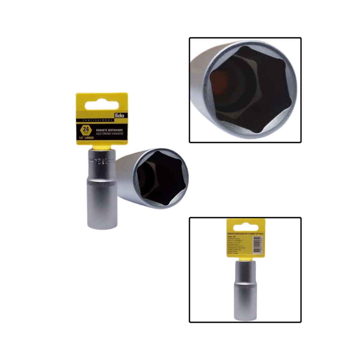 O Soquete Sextavado CR-V Longo 1/2" 24mm Fosco foi desenvolvido para garantir eficiência, torque elevado e resistência em qualquer tipo de manutenção ou montagem. Produzido em aço cromo-vanádio (CR-V), oferece durabilidade superior e excelente encaixe, reduzindo o risco de desgaste nas bordas dos parafusos. Seu formato longo permite alcançar locais estreitos e fixações profundas, proporcionando praticidade e precisão. O acabamento fosco assegura melhor aderência e proteção contra corrosão, tornando-o indispensável para mecânicos, instaladores e profissionais exigentes que buscam ferramentas confiáveis e robustas.